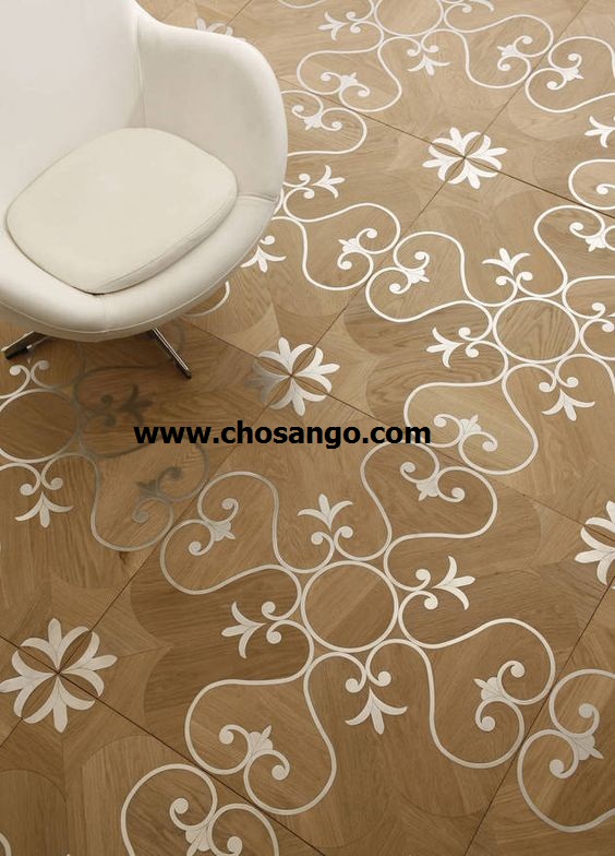 Sàn gỗ hoa văn sáng độc đáo với nhiều đường nét mang tính nghệ thuật cao. Sản phẩm được tư vấn, nhập khẩu bởi Chợ Sàn Gỗ.