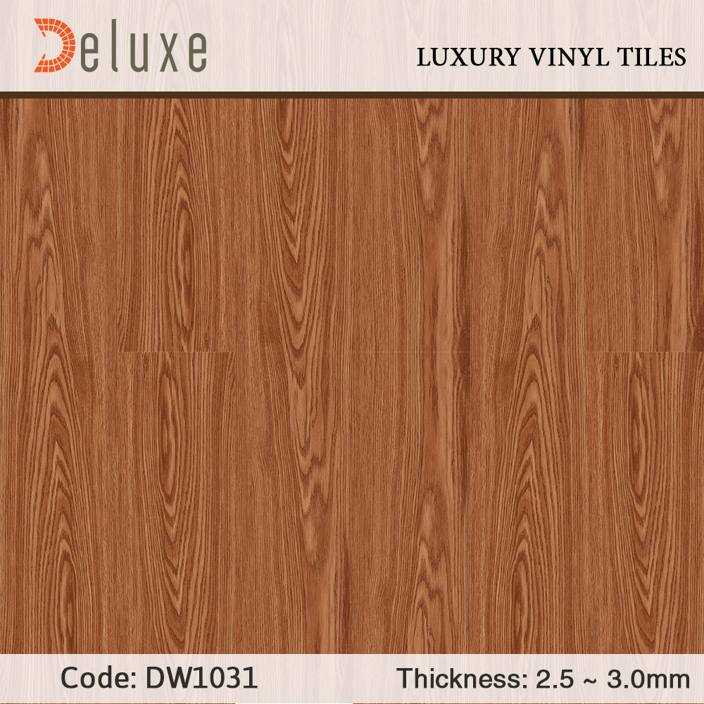 Sàn nhựa giả gỗ Deluxe Tile DW1031 là một trong những tone màu nổi bậc nhất trong bộ sưu tập sàn nhựa giả gỗ Deluxe Tile. Với tone màu đỏ cam giống như sàn gỗ căm xe trong tự nhiên mang đậm phong cách cổ điển. Làm tăng thêm sự sang trọng cho căn phòng đồng thời thể hiện đẳng cấp của gia chủ. Sàn nhựa Deluxe Tile đang dần dần thay thế các loại vật liệu lót sàn truyền thống như sàn gỗ, gạch men, sàn đá,…